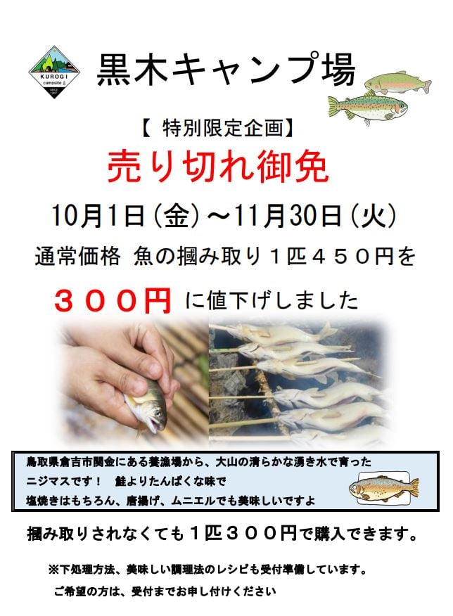 黒木キャンプ場【特別限定企画】魚の摑み取り値下げしました!