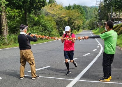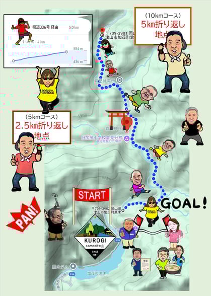 県道336を北上、2.5、5㎞地点で折り返し、完走後は賞状を贈呈、軽食のうどんもご用意しています!!