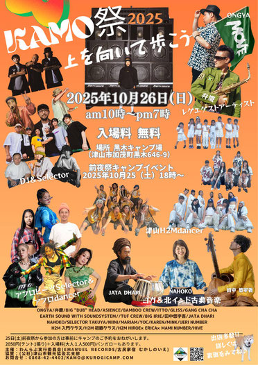 県北の山に囲まれ水がキレイな町、津山市加茂町のキャンプ場で音楽イベント「KAMO祭2025 上を向いて歩こう」が開催されます。